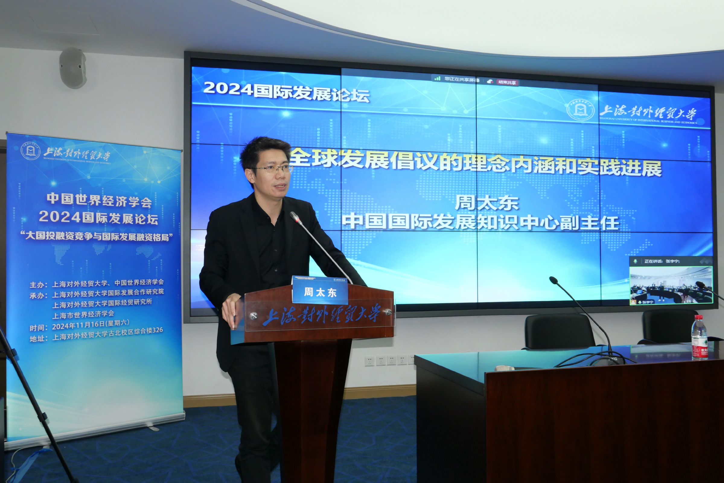 1116日,由上海對外經貿大學、中國世界經濟學會主辦,上海對外經貿大學國際發展合作研究院、國際經貿研究所、上海市世界經濟學會承辦的“中國世界經濟學會國際發展論壇(2024)”在上海對外經貿大學古北校區順利舉行。來自中國國際發展知識中心、中國社會科學院、商務部國際貿易經濟合作研究院、新開發銀行、美國康奈爾大學、北京大學、復旦大學、中國農業大學、北京外國語大學、上海政法學院、上海國際問題研究院、廈門理工學院等國內聚焦發展融資的研究機構、高校的專家學者出席,共同探討國際發展合作與融資領域的前沿問題。