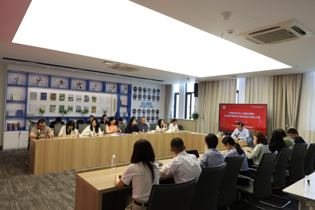 ??最后,汪榮明立足上海市高校綜合改革尤其是“一校一策”改革的要求,希望各級黨組織要充分發揮政治引領與組織凝聚作用,黨員要主動擔當、齊心協力,將作風建設轉化為深化綜合改革動力,聚焦“外”“經”“貿”特色,持續強優勢、拉長板,優化學科布局與人才培養機制,尤其是在高水平對外開放領域做好政產學研的協同創新,推動學校高質量發展。