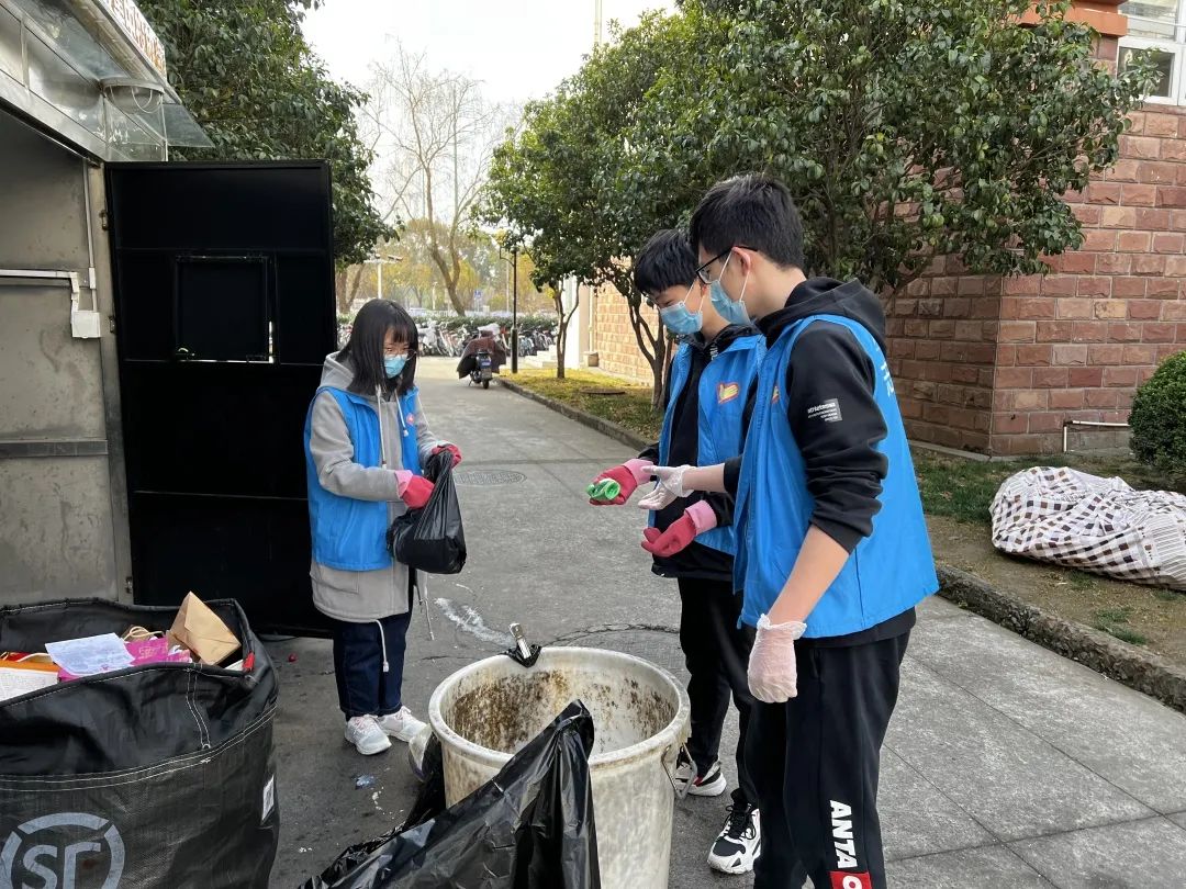 垃圾分類崗上,志愿者們耐心的引導扔垃圾的同學正確分類,同時也協(xié)助工作人員們裝填垃圾,在這一年之始,既給工作人員們送去了愛心,也鍛煉了自己的能力,更加強了同學們的垃圾分類意識。