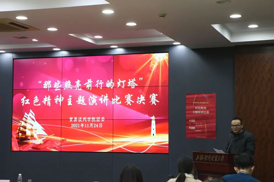 為引導(dǎo)同學(xué)們深入開(kāi)展黨史學(xué)習(xí),弘揚(yáng)偉大建黨精神,賡續(xù)紅色血脈、踐行責(zé)任擔(dān)當(dāng),11月24日晚,由貿(mào)易談判學(xué)院團(tuán)委舉辦的“那些照亮前行的燈塔”紅色精神主題演講比賽決賽在信息樓503順利舉行。