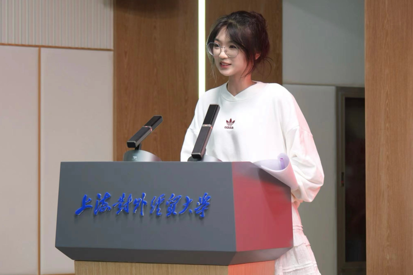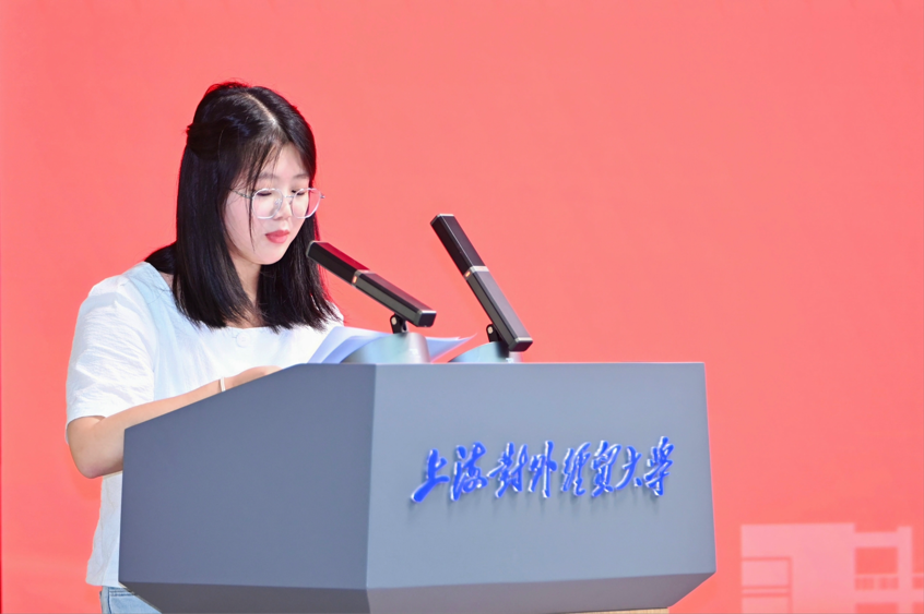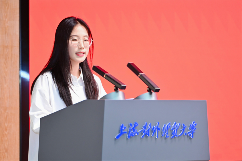 24級國際經貿規則專業徐姝怡作為本科新生代表發言。她表示將在大學學習生涯中努力夯實專業基礎,拓展全球視野,將成長為國際組織后備人才作為自己奮斗的目標。