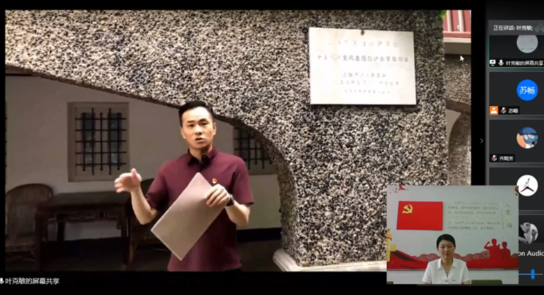 隨后,黨團員青年共同云上參觀了位于思南路73號國共產黨駐滬辦事處舊址(周公館,實地參觀了館內設施,學習了解了周恩來、董必武等黨的革命先驅在此為擴大和鞏固革命統(tǒng)一戰(zhàn)線,為中國人民解放事業(yè)作出重要貢獻的歷史故事。隨后,中國建設銀行上海分行六里支行黨總支副書記、副行長、我院MBA校友周磊同志為黨團員青年上情景黨課,介紹了周公館在黨和國家發(fā)展歷史時期里的重要作用,并進行了黨史知識問答互動。