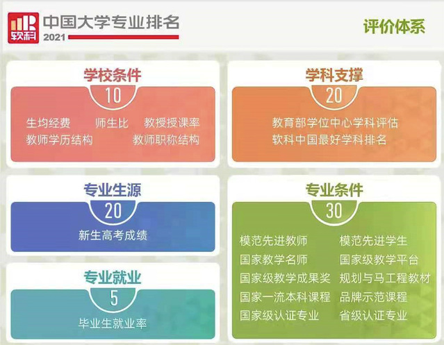 “軟科中國大學專業排名”于2021年首次發布,排名覆蓋92個專業類的509個本科專業,發布近3萬個專業點,迄今為止覆蓋專業數量最多、參評專業規模最大的中國大學本科專業排名。排名采用獨具特色的學校-學科-專業三層次專業競爭力評價框架,設置學校條件、學科支撐、專業生源、專業就業、專業條件5個指標類別和19項指標,對1200多所高校的6萬個本科專業點進行動態監測式評價。“軟科中國大學專業排名”旨在為學生和家長選擇本科專業提供客觀參考,也為高校的本科專業建設與分析提供事實依據。
