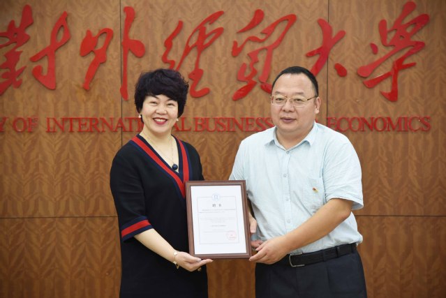 工商管理學院黨委書記武增勇向來伊份創始人、集團總裁郁瑞芬女士頒發企業導師聘書