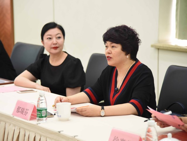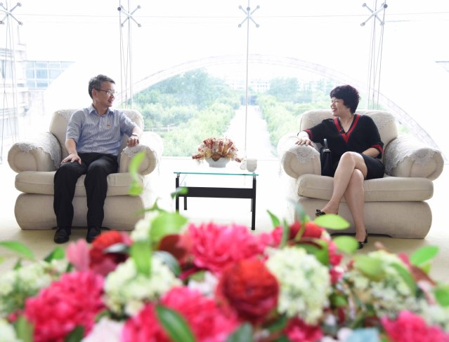 學校黨委副書記、副校長祁明教授與來伊份創始人、集團總裁郁瑞芬女士親切交談