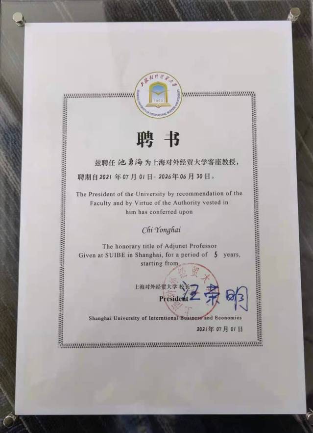 2021年7月6日上午上海對外經貿大學工商管理學院副院長左鵬、工商管理學院副院長王朝暉教授、工商管理學院黨委副書記施毅婷前往施璐德亞洲有限公司,與董事長池勇海博士、CEO李燕飛、投融部高級經理徐丹妮、董事會秘書沈佳琪等人進行了親切友好的商談,深刻地探討了產學研合作。雙方就建立實習基地、舉行定期或不定期的學術研討會、支持和鼓勵以創業競賽為代表的校園活動等方面達成共識,堅持將社會實踐與理論知識相結合,立志于讓學生走進施璐德,讓施璐德走進課堂。同時,左鵬副院長為池勇海博士頒發了聘書,聘任池博士為上海對外經貿大學客座教授。