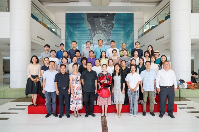 隨后,姜院長代表學院向奚老師贈送了榮休紀念牌。在校學生代表向奚老師獻上了鮮花,表達了祝福。最后,參加儀式老師在信息樓二樓大廳合影留念。