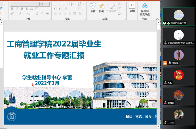 為進一步加強學院的疫情防控工作,確保學生的生命健康安全,同時穩步推進畢業生就業的各項工作安排,激發學生的就業熱情,使“三全育人”的理念真正深入人心,為畢業生順利就業保駕護航,3月24日,工商管理學院線上舉辦2022屆畢業生就業工作推進會,以“凝心聚力、共克時艱”的理念,做到全員參與、推進學生就業,解決疫情常態化下的畢業生就業問題。工商管理學院領導班子、系主任、教工支部書記、全體班主任、全體輔導員參加本次會議,特邀校就業指導中心李蕾老師出席,會議由工商管理學院黨委副書記張瑞娟主持。