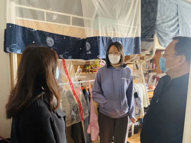 走訪過程中,學(xué)院老師詳細(xì)了解了疫情防控期間學(xué)生們的思想動(dòng)態(tài),并重點(diǎn)就疫情下的畢業(yè)、就業(yè)等情況與同學(xué)們進(jìn)行了細(xì)致的交談,與同學(xué)們一起研討就業(yè)形勢(shì),幫助學(xué)生解決升學(xué)與就業(yè)上遇到的問題,同學(xué)們也積極主動(dòng)地向老師反饋了學(xué)習(xí)生活近況。學(xué)院老師表示,目前正處于疫情防控的關(guān)鍵時(shí)期,宿舍成為了學(xué)生日常生活和學(xué)習(xí)的重要場所,學(xué)院高度重視守護(hù)學(xué)生的健康安全、解決學(xué)生的需求問題,同時(shí)叮囑同學(xué)們要切實(shí)做好防護(hù)工作,珍惜時(shí)光為未來的升學(xué)就業(yè)打下堅(jiān)實(shí)的基礎(chǔ)。最后,學(xué)院老師鼓勵(lì)同學(xué)們要保持良好樂觀的心態(tài),合理安排好學(xué)習(xí)時(shí)間,以昂揚(yáng)的士氣擁抱美好的未來。