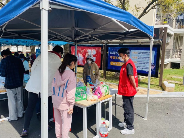 社區外賣自取點的藍色帳篷下,總見紅色的背影。雨橫風狂三月暮,寒風凜冽黑幕漸臨,唯有鮮紅的馬甲綻放著光芒,始終指引外賣領取的方向。我們默默堅守在外賣自取點的崗位上,幫助同學們尋找外賣,也幫助保安擺放外賣。萬事只有親身體悟,方能深切感受其中不易,卻也收獲了滿足與成就。相信在大家的共同努力后,終能揮去陰霾,重見陽光。