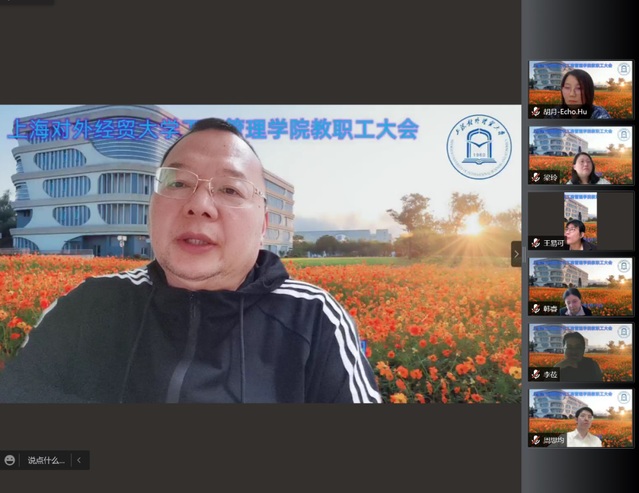 會議伊始,學院副院長王朝暉老師從疫情期間線上教學質量、教學培養方案修訂、課程建設(線上線下融合、在線開放課程等)、專業建設、學業預警與學生幫扶、本科畢業論文等方面介紹了本科教學工作近期安排與要求。學院副院長謝佩洪(掛職)向全院老師通報了MBA招生工作情況,感謝MBA招生工作中每一位老師的辛勤付出;MBA中心接下來會全力謀好MBA學生培養工作,特別強調了學位論文質量離不開各位論文指導老師的嚴格要求。學院副院長左鵬向全院老師通報了學術碩士研究生招生情況、疫情期間線上教學質量與研究生創新項目工作等,感謝各位老師克服困難積極支持,希望老師繼續重視線上教學質量與督促學生積極科研。