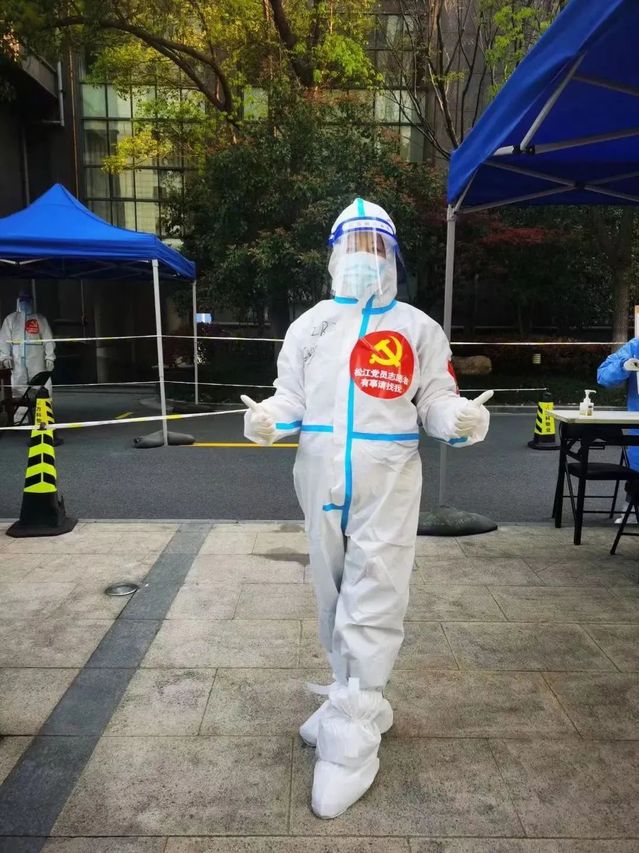 市場營銷系教工黨支部黨員左鵬在社區參與核酸檢測志愿服務,每次“站崗”均達五、六個小時,防護服常常被汗水浸濕,但她說:“作為一名黨員教師,應該用實際行動給學生做個榜樣。”