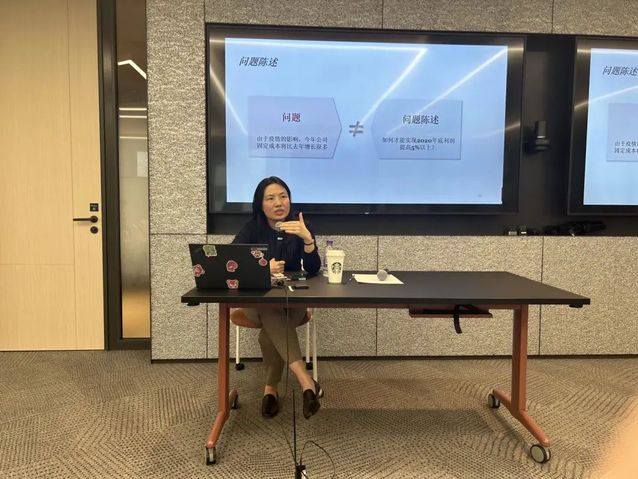 案例分析環節,Megan老師從定義問題、確定關鍵議題、進行分析、得出簡介及結論、產生影響力五個邏輯化解決問題的步驟,引導同學們就“如何讓ABC公司實現2023年中國業務收入增長50%。”進行策劃并討論。在短暫并緊張的十五分鐘里,各小組激烈討論,進行頭腦風暴,創作出了各自的策劃方案,并在展示環節中清晰的說出了自己的思考與想法。活動的整個環節都引發了同學們的細致思考,相信每個人都收獲頗豐,在活動中有所感悟。