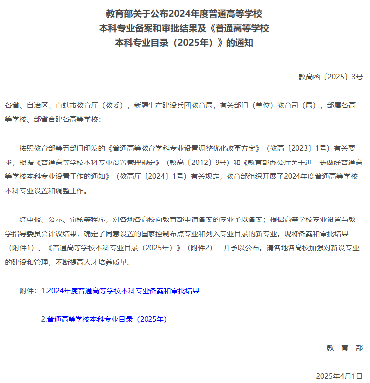 近日,教育部發布了《教育部關于公布2024年度普通高等學校本科專業備案和審批結果及〈普通高等學校本科專業目錄(2025年)〉的通知》(教高函〔2025〕3號),上海對外經貿大學工商管理學院獲批增設“大數據管理與應用”本科專業,專業學制4年,將列入2025年本科招生計劃。