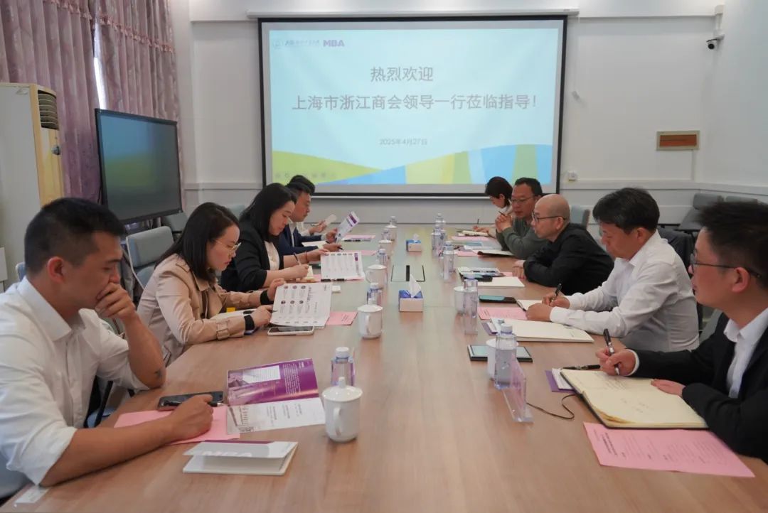 2025年4月27日,上海市浙江商會副秘書長俞秋勤,秘書長助理莊小軍,人才工作部部長張哲,法律服務部部長李嘉,黨建人才服務中心潘群英一行蒞臨上海對外經貿大學工商管理學院座談交流,工商管理學院黨委書記武增勇,黨委副書記、院長龍江,MBA教育中心主任吳國新等參加座談。交流會由吳國新主持。