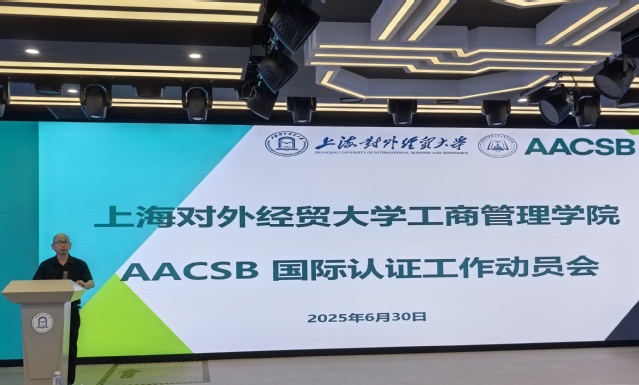 2025年6月30日,工商管理學院在松江校區學思樓A1室召開AACSB國際認證工作動員會。北京外國語大學國際商學院原院長、AACSB國際認證資深指導導師牛華勇教授,北京外國語大學國際商學院國際認證辦公室主任馬勤出席會議并作專題報告。工商管理學院領導班子成員和全體教職工參加會議。會議由學院副院長楊軍敏主持。
