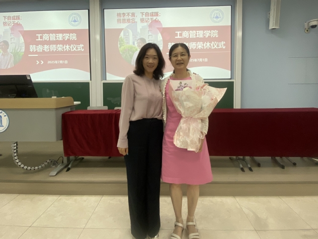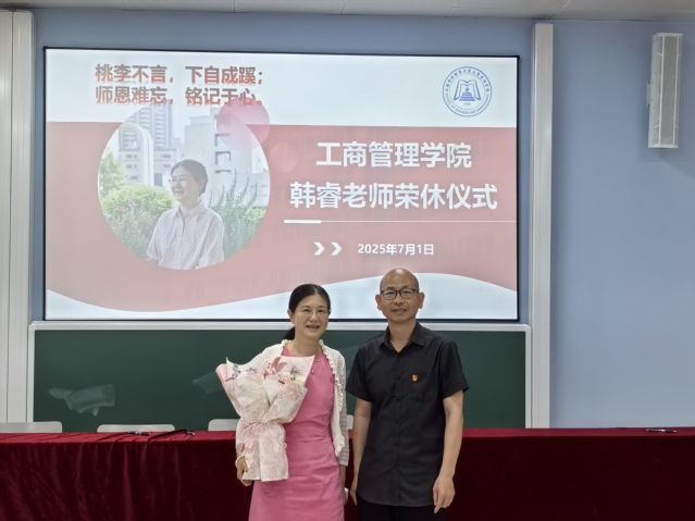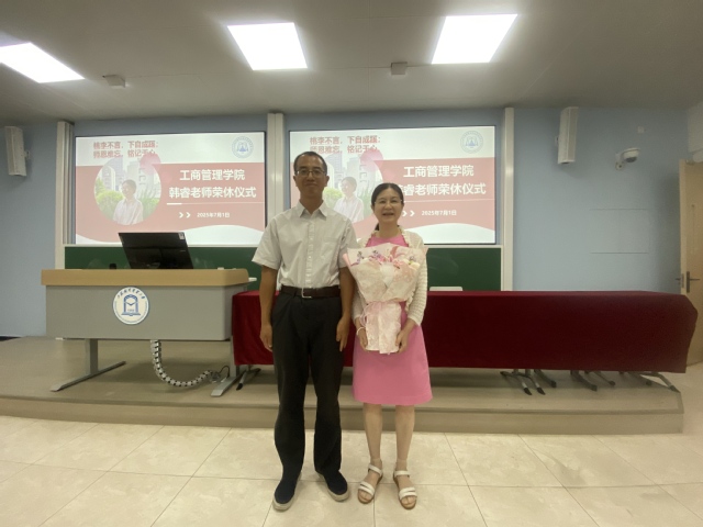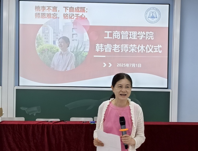 2025年7月1日,工商管理學院在松江校區學思樓D104室為韓睿老師舉行溫馨的榮休儀式。活動由學院黨委書記武增勇主持。