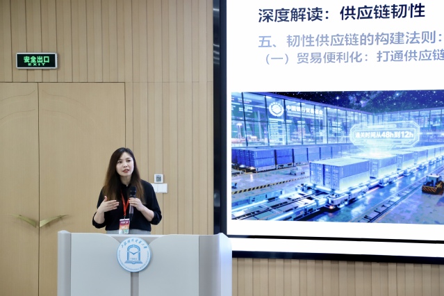 開班儀式上,南京信息工程大學商學院院長、教育部物流管理與工程類專業教學指導委員會物流管理工作組副組長邱玉琢教授受邀作專題報告。聚焦供應鏈韌性和數字化發展趨勢,邱玉琢教授闡述了供應鏈韌性的復雜機制與影響因素,剖析了數字化前沿技術、創新應用及其對供應鏈各環節產生的深遠變革,通過詳實的數據、生動的案例就數字化發展如何驅動供應鏈效率提升、成本降低、協同優化等方面的相關問題進行了深度解讀。