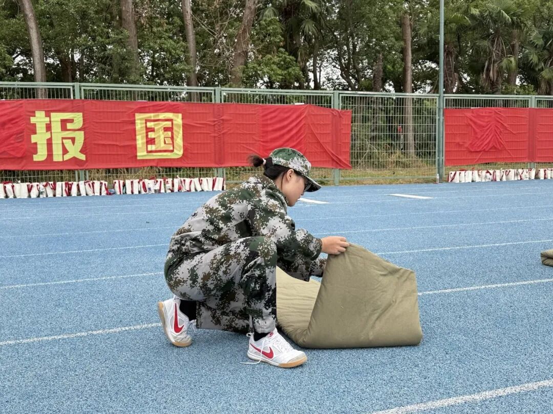 疊軍被,看似簡單,卻是軍訓中極具考驗的“必修課”。指尖小心翼翼捏出筆直的線條,掌心一次次壓平棉被的褶皺,硬是把蓬松的被子,疊成了方整的豆腐塊。這小小的一方棉被里,鍛煉著大家的細致與耐心,更讓“嚴謹做事、追求極致”的意識在潛移默化中融入日常,為這段迷彩青春,添上了一堂難忘的成長課。