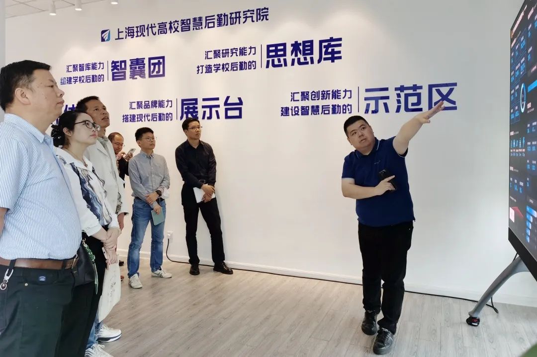 在上海高校智慧后勤研究院相關負責人引導下,一行人參觀了上海現代學校智慧后勤展示中心,從智慧教室到智能錄播室,再從智慧餐廳到智慧宿舍,大家邊走邊看邊學習,收益頗多。