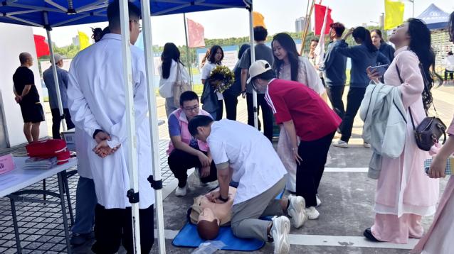 運動會現(xiàn)場,交大附屬松江醫(yī)院的醫(yī)學(xué)專家們?nèi)缂s走進(jìn)校園,他們不僅帶來了前沿的醫(yī)療資源,更攜帶著豐富的臨床經(jīng)驗,精心設(shè)立了涵蓋各類常見疾病診斷、運動健康評估等諸多方面的義診項目。尤為值得一提的是,專家們還現(xiàn)場為師生們演示了專業(yè)的應(yīng)急心肺復(fù)蘇以及應(yīng)對氣梗的技能操作,精湛的手法、清晰的講解,引得圍觀的師生們連連發(fā)出陣陣熱烈的掌聲。與此同時,專家們貼心地為師生們送上了實用的專業(yè)急救包,以及關(guān)乎慢病防治的宣傳手冊,為師生們?nèi)粘=】当U显鎏碇Α?/span>