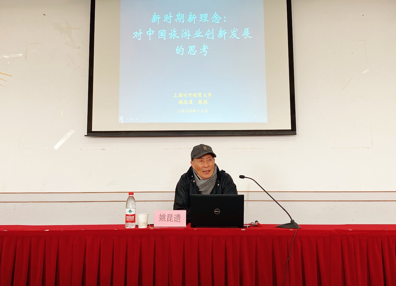 2020年12月4日上午,姚昆遺教授以《新時期新理念:對中國旅游業創新發展的思考》為題,暢談新時期旅游業的變化以及疫情后對旅游業的探索。姚教授從中國旅游業發展的新時期、疫情后對旅游和旅游業的再思考、引領中國旅游業發展的新理念、上海都市旅游的創新探索等四個方面進行了闡述,深刻解讀了“全域旅游”的內涵與外延,指出中國旅游業已經成為了國民經濟支柱產業,全域旅游已經成為了旅游業發展的國家戰略。通過姚教授的講座,同學們對我國旅游業有了更全新的認識,也給同學們的旅游研究提供了靈感與方向。講座由劉少湃老師主持。
