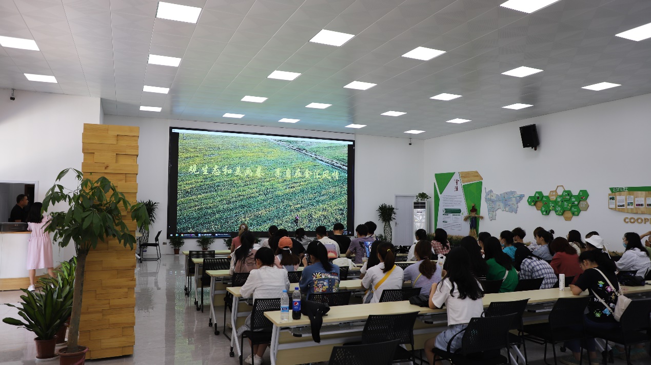 同學們首先參觀了位于金匯鎮新強村的奉賢區首家智慧興農驛站,來自上海玖童農業合作社的負責老師在報告廳介紹了金匯鎮智慧興農平臺建設、農業信息化管理平臺在農作物管理和農作物整合營銷傳播中的應用、現代農業合作社經營模式等現代化智慧農村建設成果。同學們現場參觀了“金匯12味”品牌農產品展示。
