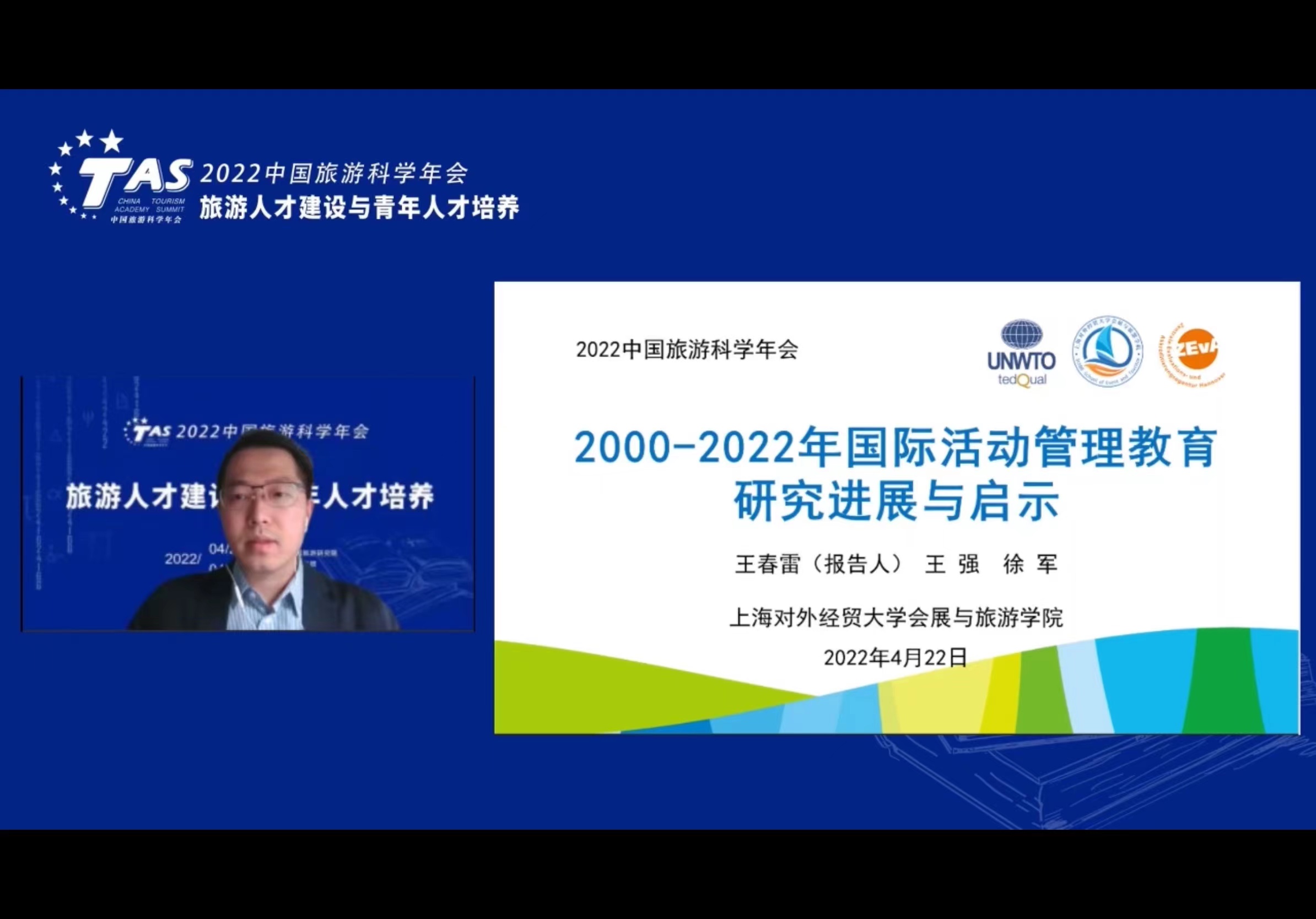 本次年會共收到會議論文104篇,作者單位覆蓋部屬高校、地方院校、職業(yè)院校、科研院所、行業(yè)協(xié)會等不同性質(zhì)單位。經(jīng)過專家多輪評審,共評出21篇獲獎?wù)撐模渲幸坏泉?/span>3篇,二等獎5篇,三等獎13篇(具體名單見附件)。由我院院長王春雷教授和校友王強(qiáng)、旅游管理專業(yè)2021級研究生徐軍共同撰寫的《2000-2022年國際活動管理教育研究進(jìn)展與啟示》獲得二等獎。22日上午,王春雷老師代表團(tuán)隊做了交流發(fā)言,受到點評專家和各方好評。