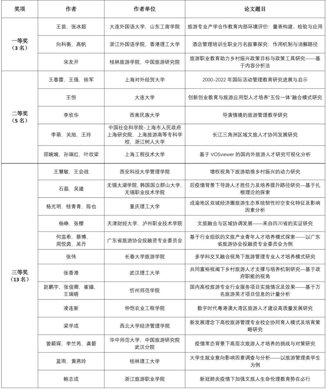 附:2022中國旅游科學(xué)年會優(yōu)秀論文獲獎名單