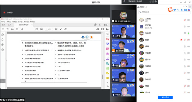 5月24日晚,會(huì)展與旅游學(xué)院舉行2022級(jí)本科人才培養(yǎng)方案修訂在線研討會(huì)。學(xué)校副校長(zhǎng)徐永林出席會(huì)議并講話。教務(wù)處副處長(zhǎng)(主持工作)朱建明、副處長(zhǎng)李醫(yī)群及教學(xué)科老師、學(xué)院班子成員、專業(yè)主任、教工支部書(shū)記、骨干教師代表和教學(xué)秘書(shū)參加會(huì)議。會(huì)議由副院長(zhǎng)田紀(jì)鵬主持。