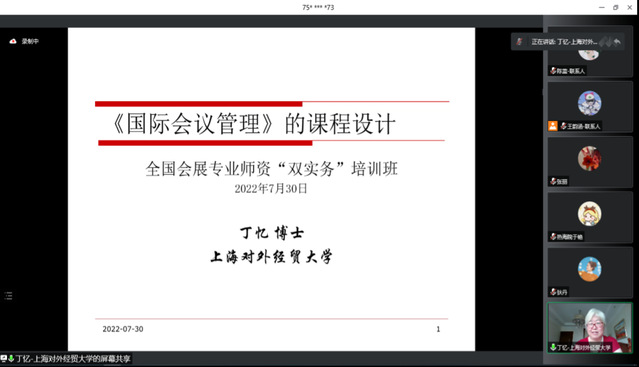 上午9:30準時開始,此次培訓班由上海對外經貿大學會展與傳播學院狄丹老師主持、下午上海對外經貿大學會展與傳播學院會展經濟與管理系主任黃輝主持。