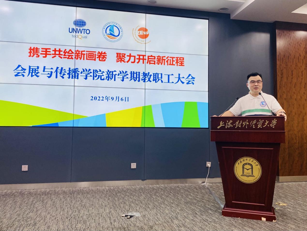 開篇謀局,凝聚共識。為保證新學期開學各項工作順利開展,鼓勵全體教職工上下一心、鼓足干勁,以嶄新的面貌迎接新學期,將學院各項事業推向一個新臺階,2022年9月6日上午,會展與傳播學院在信息樓503報告廳隆重召開院系調整后的首次全院教職工大會。學院全體教職員工參加了會議,會議由黨總支書記談華主持。