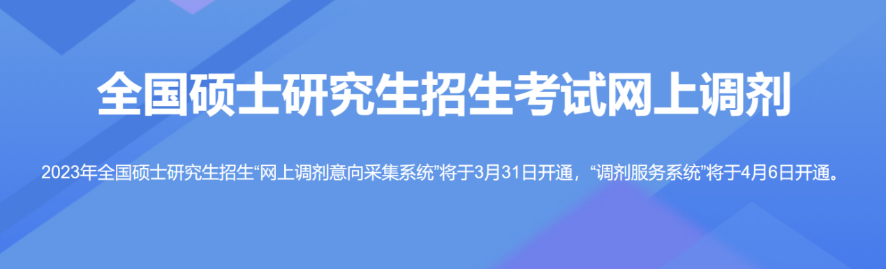 同時,2023年全國碩士研究生招生網上“調劑意向采集服務系統”將于3月31日開通,“調劑服務系統”將于4月6日開通。請有調劑意愿的考生密切關注“中國研究生招生信息網”(網址:https://yz.chsi.com.cn/;微信公眾號:chsiyz),屆時登錄調劑系統和招生單位網站,查詢招生單位調劑相關信息,按要求填報調劑志愿。