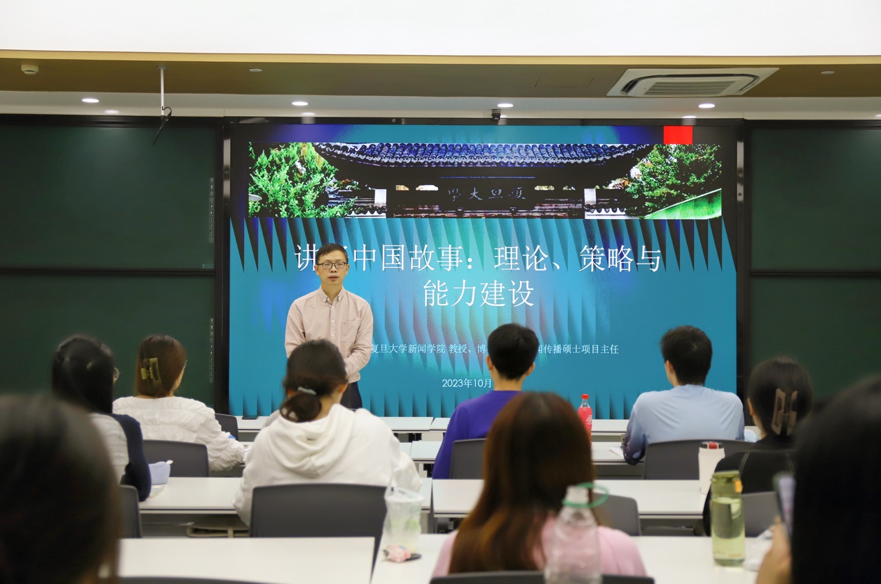 為提升新聞與傳播系研究生和本科生參與國際傳播的能力建設,10月17日,復旦大學新聞學院傳播系教師、博士生導師鄧建國教授蒞臨我院,為新聞與傳播系學生開展了一場既富含人類交往的哲學思考,又生動聯系對外報道實踐的課程講座。