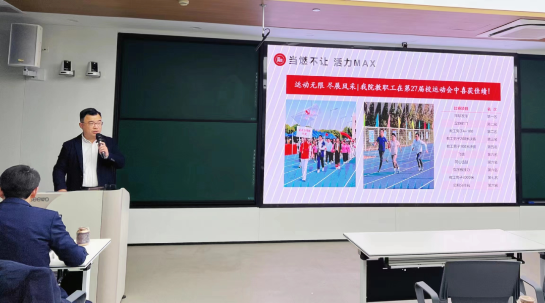 談華作了學院2023年度工會工作報告和工會經費使用情況報告。他從加強民主管理,堅持院務公開、服務中心工作、關心關愛教職工、豐富教職工文化生,做好凝聚力建設等方面,報告了一年來學院工會工作開展情況。他對全體教職工對工會工作的支持和配合表示感謝。他表示,2024年學院工會將繼續堅持以教職工為本,完善教職工聯系幫扶機制,不斷提升維護教職工利益的服務能力;根據學院教職工的需求和特點,以教工小家、媽咪小屋等為載體,大膽創新,多為學院教職工做好事、辦實事、解難事,不斷提升學院教職工的滿意度和幸福感。