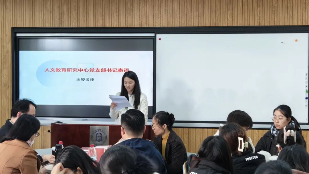接著,人文教育研究中心黨支部書記王婷老師,代表人文支部發(fā)表寄語。她向同學(xué)們介紹了人文支部的黨建特色,并以紅色經(jīng)典作品《牛虻》為例,闡述了閱讀名著的重要性。勉勵同學(xué)們要充分利用大好年華廣泛閱讀各類經(jīng)典作品,提升自己的知識面和理性思辨能力,為將來升入本科階段的學(xué)習(xí)打下堅實基礎(chǔ)。