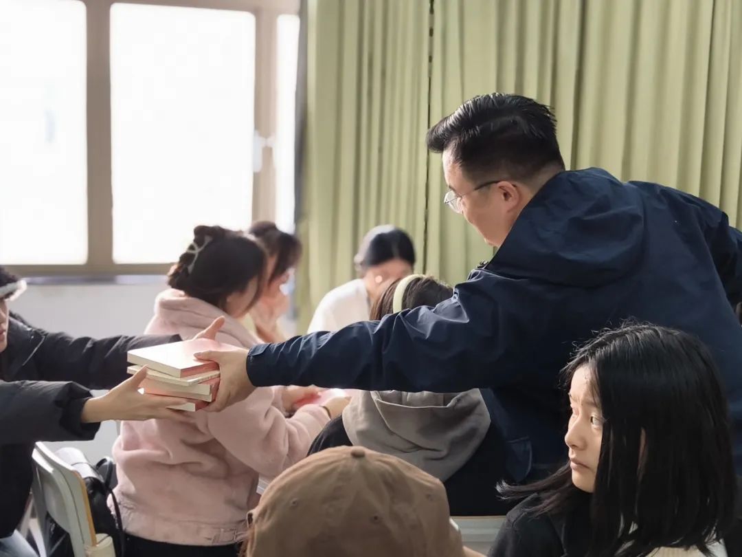 隨后,人文教育研究中心黨支部的老師們向23級預(yù)科班的全體同學(xué)贈送了經(jīng)典文學(xué)作品書籍和U盤。