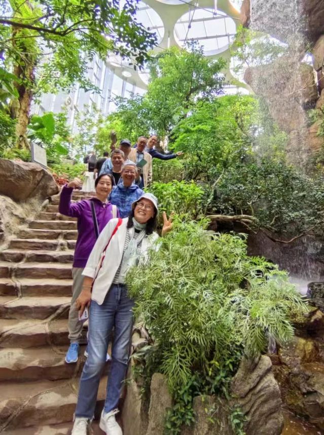 老同志們首先參觀了亞洲最大規模的多功能生態綜合體——上海溫室花園。園內種植了各類熱帶干旱、雨林、花卉類植物,匯集了國內罕見植物,在不同地貌中打造出一個個絢麗多彩的植物群落。老同志們興致勃勃地觀賞了沙漠風情的“巨人柱”仙人掌和“猴面包樹”,近距離接觸豬籠草、瓶子草等奇特的捕蟲植物,領略了熱帶花卉的絢麗多姿,感受大自然的鬼斧神工。大家紛紛感嘆大自然的神奇之處,不時拿出手機,記錄下這些珍貴的瞬間分享給家人和朋友。