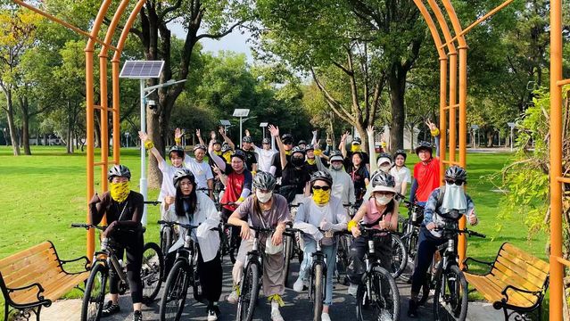 在領隊的專業培訓之下,同學和老師們于大觀園嗨king營地集合完畢后,開始了2小時的騎行活動。在騎行體驗過程中,同學和老師們相互相互鼓勵,共同克服路途中的各種挑戰。通過騎行環湖的體育形式,深度體驗了淀山湖作為特色休閑體育旅游目的地,在體育運動、休閑旅游、親子游玩、露營旅游等方面開發的各項體育旅游融合項目。