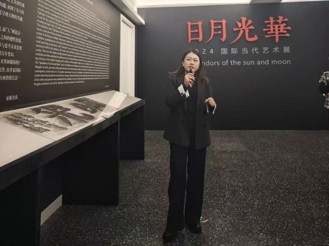 在活動中,學生們首先參觀了美術館正在展出的“日月光華”展覽。展覽展示了近60位全球藝術領域重要藝術家的作品,涵蓋了多種藝術形式和主題,體現了東西方哲學的碰撞與交融。館方講解員在參觀過程中詳細介紹了每位藝術家的創作背景和作品內涵,幫助學生們更深入地理解當代藝術的多樣性和文化深度。