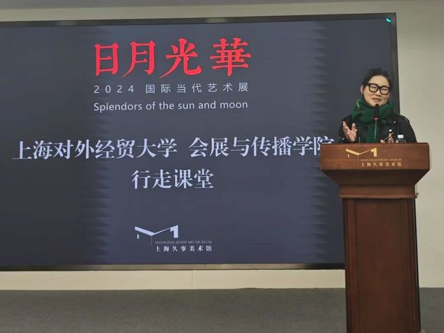 為進一步加強校企合作,提升學生的實踐能力,2024年11月19日,會展與傳播學院旅游系教師楊丹帶領專業學生赴上海久事美術館,進行了一次深入的行業考察活動。在此次行程中,上海久事文化傳播有限公司藝術總監甘智漪女士、公共教育板塊負責人鄒卓爾女士熱情地歡迎了同學們,并為他們提供了詳細的參觀引導。