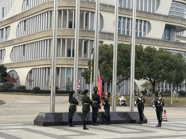 2024年12月23日,上海對外經(jīng)貿(mào)大學會展與傳播學院24級學生齊聚圖文信息樓南廣場,舉行了“青春正當時,逐夢揚國威”主題升旗儀式。