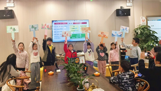 活動(dòng)開始,會(huì)展與傳播學(xué)院院長王春雷介紹了此次閱讀沙龍的背景和主要目的。本次閱讀沙龍的主題是“中華傳統(tǒng)二十四節(jié)氣之冬日節(jié)氣”,有臺文化創(chuàng)始人陳春娜、上海外國語大學(xué)國家安全教育研究中心秘書長楊敏兩位老師應(yīng)邀擔(dān)任授課專家。除了知識講授,特別設(shè)計(jì)的競賽環(huán)節(jié)將活動(dòng)氣氛推向高潮,小朋友們化身“小小節(jié)氣宣傳員”,把掌握的知識運(yùn)用其中。在隨后的手工環(huán)節(jié),親子家庭一同制作冬日節(jié)氣竹編編織畫,立體鏤空的節(jié)氣場景在彩條的襯托下格外亮眼。對于這場“家門口”的親子活動(dòng),參與的家長們紛紛表示,活動(dòng)形式豐富多樣,寓教于樂,所以特別期待下一次活動(dòng)。