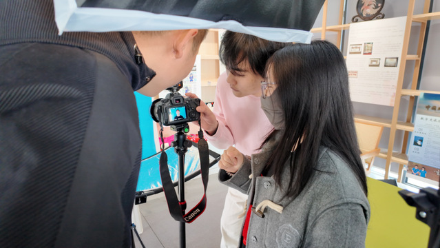 除了拍攝團隊的專業支持,活動現場更是充滿了溫馨與歡樂。同學們在拍攝的間隙熱情交流,互相拍攝“證件照花絮”和工作花絮,老師也親切地參與其中,不僅鼓勵大家積極嘗試,還踴躍參加了活動,整個活動氛圍快樂融洽。