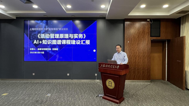 院長王春雷作了題為《<活動管理原理與實務>AI+知識圖譜課程建設》的“數智課程”建設項目的展示交流。王院長從課程概況、建設目標、主要成果及下一階段的工作計劃等方面,對課程的AI+知識圖譜建設進行了深入探討。該課程在課程定位、教學模式與評價體系等方面進行了系統性創新,課程定位突出“培養數智時代復合型人才”的專業定位,教學模式體現“體驗式學習”教學法,評價體系突出“It-They-I-We”多維動態評價體系,并結合AI學習行為分析工具,全面激發學生數智化潛能。