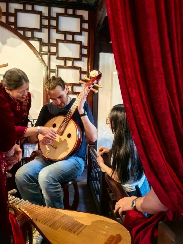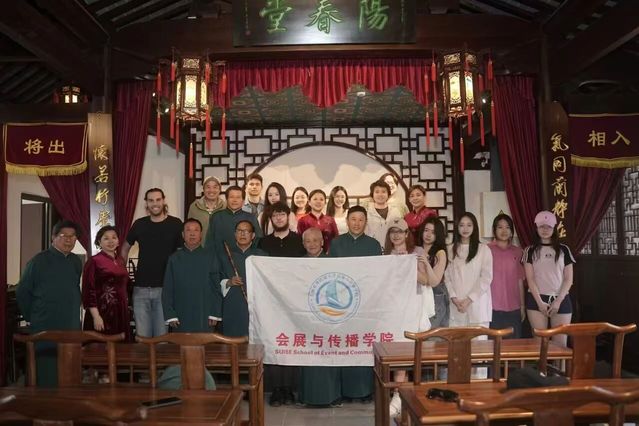 2025 年 5 月 13 日,旅游管理專業在馬家廳非遺傳習基地舉辦了一場別開生面的泗涇非遺體驗活動。學生們全程帶領國際留學生,沉浸式體驗泗涇兩大非遺瑰寶——泗涇十錦細鑼鼓與泗涇皮影戲。