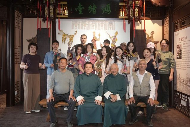 過程中,泗涇十錦細鑼鼓非遺傳承人彭景良和泗涇皮影戲非遺傳承人唐家昌等老藝人親臨現場,為留學生們進行了專業講解和演示,向參與者展示了非遺技藝的獨特魅力。