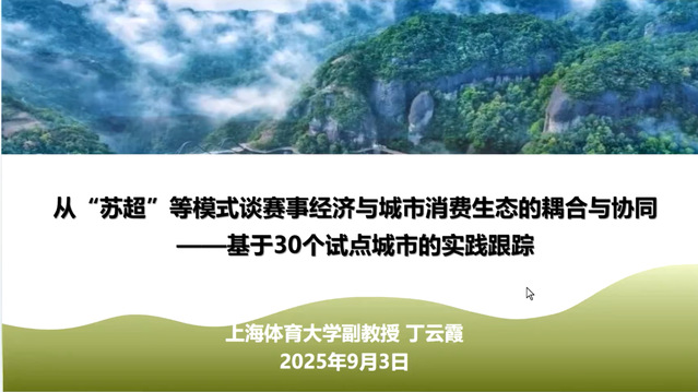 丁云霞副教授以《從“蘇超”等模式談賽事經濟與城市消費生態的耦合、協同與重構——基于30個試點城市的實踐跟蹤》為題,系統梳理了貴州榕江“村超”、江蘇“蘇超”兩大現象級案例。她表示,體育賽事已超越“競技運動”本身,成為激活區域經濟、塑造城市 IP、推動消費升級的“連接者”。通過對全國30個賽事經濟與體育消費試點城市的跟蹤,她從政府協調、政策工具、賽事擴張、城市文旅名片、消費場景等方面詳細剖析了賽事經濟與城市消費生態的協同模式。并建議上海應構建覆蓋市區—社區—長三角的三級群眾賽事聯賽體系,打造“邊比賽、邊打卡、邊消費”的沉浸式場景,以賽事流量帶動城市增量。