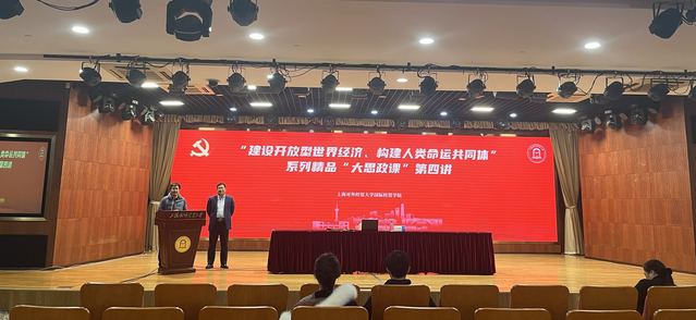12月6日下午,“建設開放型世界經濟、構建人類命運共同體”系列精品“大思政課”第四講在松江校區(qū)信息樓507報告廳舉行。國際經貿學院院長何歡浪教授主持,課程采取線上線下相結合的方式進行,學校官方微信視頻號同步線上直播,學院師生代表及校內外1500余名觀眾共同聆聽。