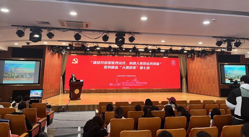 3月7日下午,“建設開放型世界經濟、構建人類命運共同體”系列精品“大思政課”第七講在松江校區信息樓507報告廳舉行。國際經貿學院副院長沈克華主持,學校官方微信視頻號同步線上直播,學院師生及校內外3800余名觀眾共同聆聽。